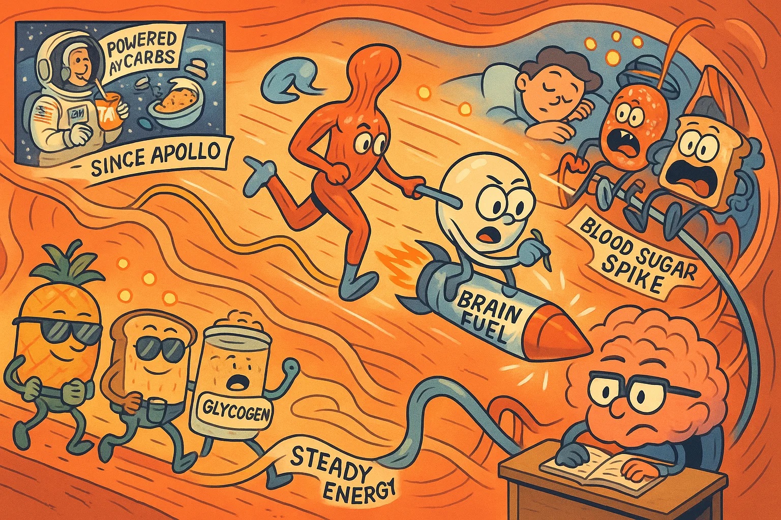 🧠 เรื่องจริง: ในช่วงแรกของภารกิจ NASA นักบินอวกาศได้รับอาหารที่มีคาร์บมาก เช่น Tang และ พาสต้าแบบแห้งแช่แข็ง อาจไม่ใช่อาหารสุดหรู แต่คาร์บช่วยให้พลังงานที่เชื่อถือได้ในอวกาศ